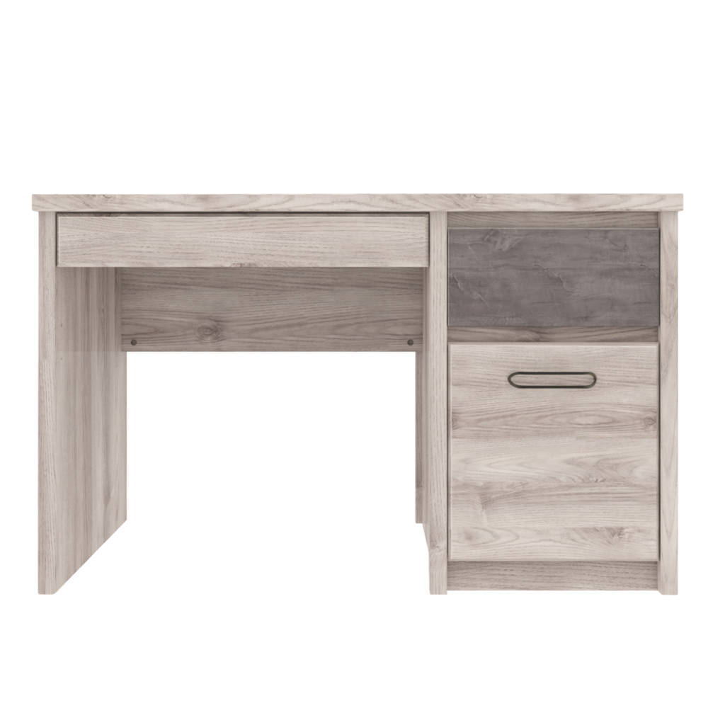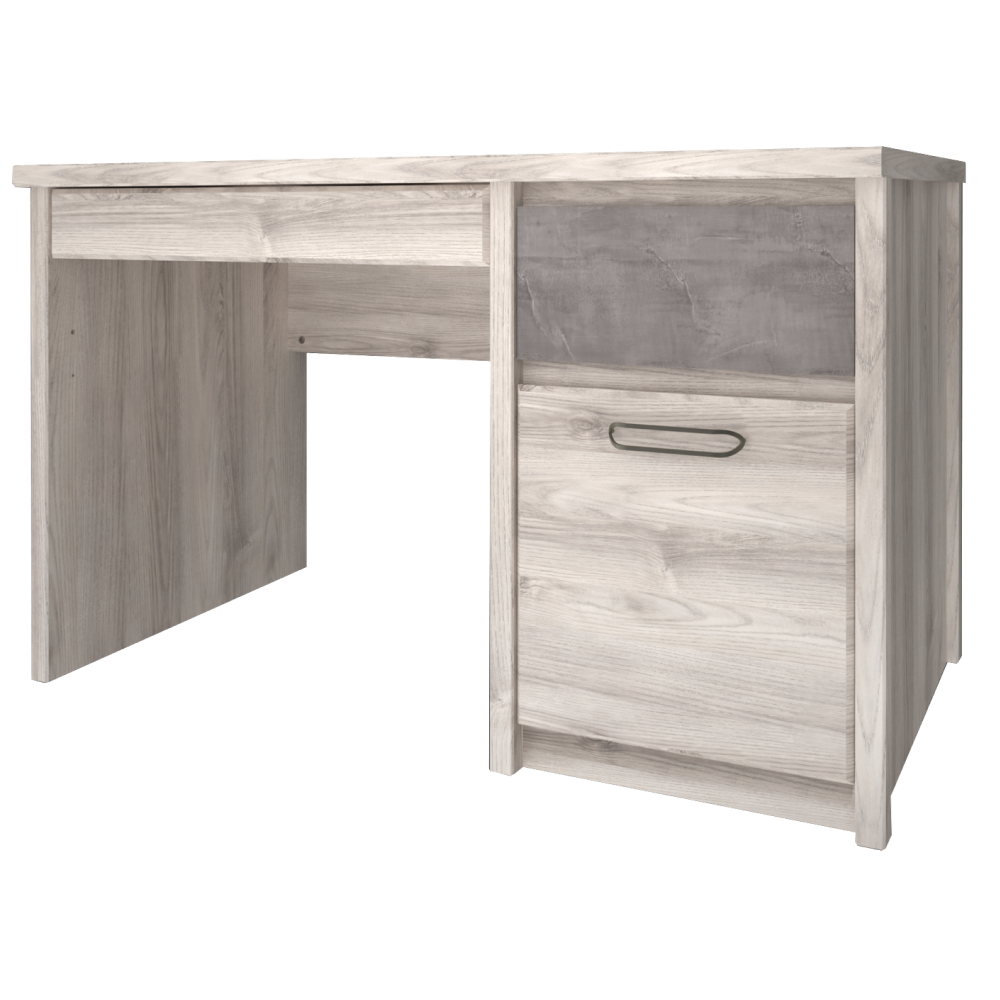 Material: PAL melaminat Culoare: castan Nairobi / onix Dimensiuni (LxAxÎ): 120x75x60 cm Grosime material: 1,6-3,2 cm Mânere metalice Culoare mânere: neagră Cu sertar Capacitate sertar: 3 kg Dulap cu uşă Cu suport glisant pentru tastatură Universală Picioare din plastic Design modern Livrată dezasamblată