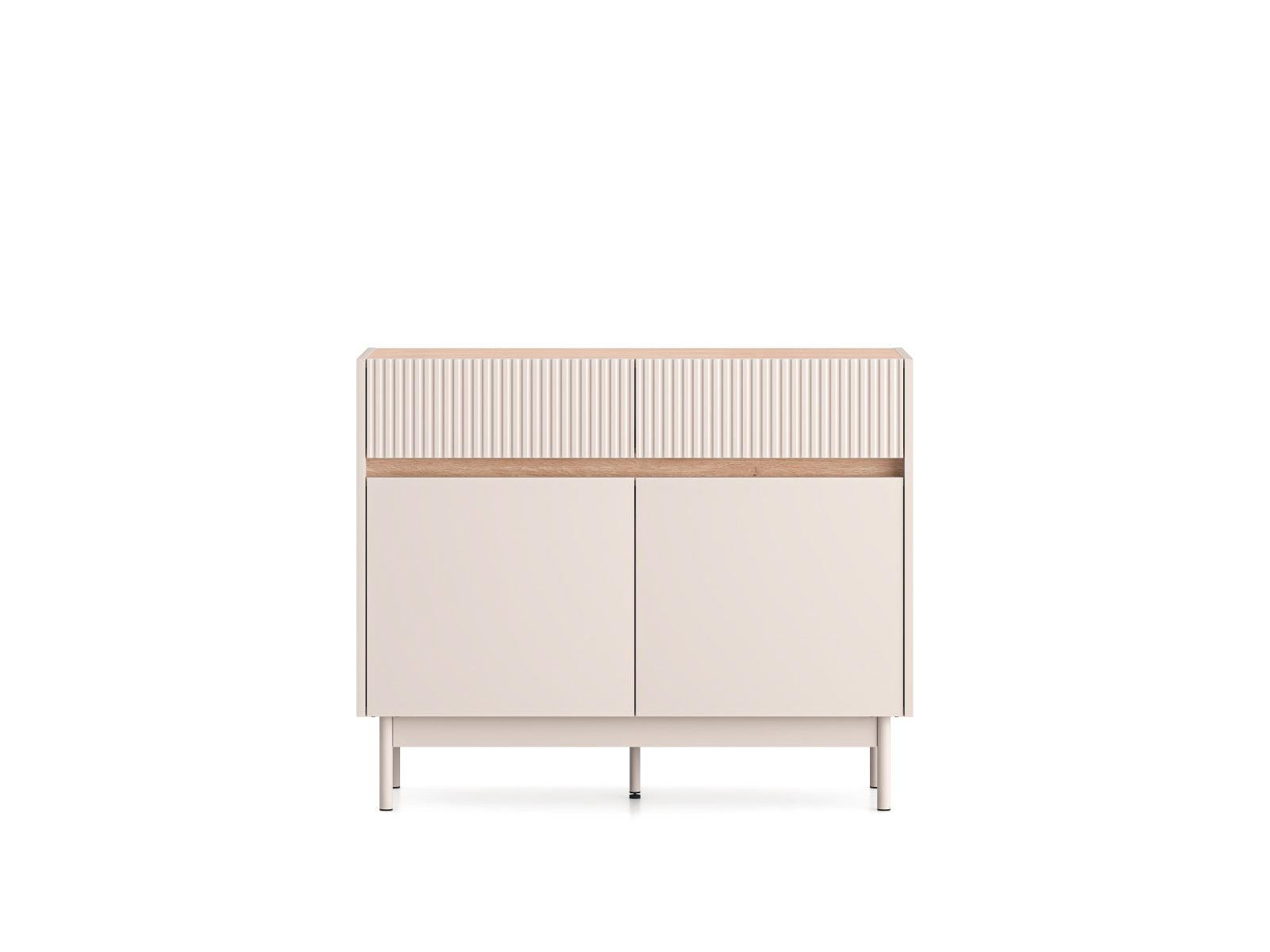 Bortis Impex Comoda cu 2 sertare si 2 usi , pal casmir/stejar, fronturi sertare cu caneluri riflaj, 104 cm lungime x 40 cm adancimex 85 cm inaltime, pe picioare