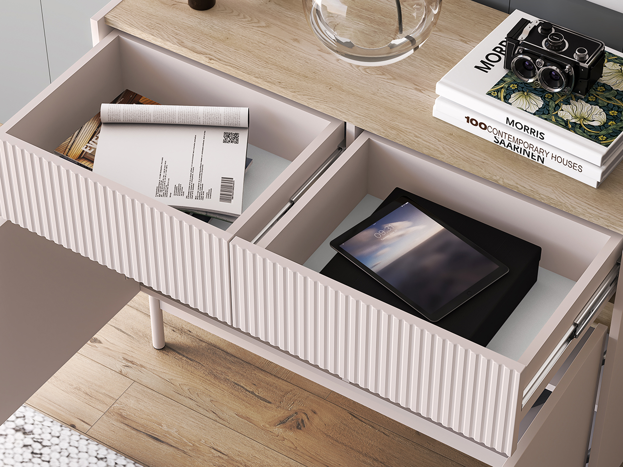 Fronturi la sertare cu caneluri model riflaj.