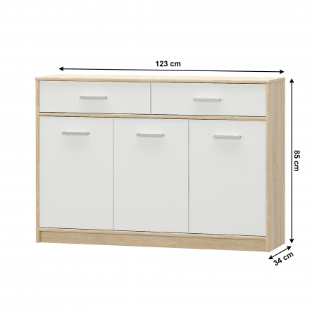 Bortis Impex Comodă 3D2S, alb/stejar sonoma, TEYO