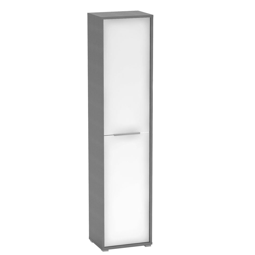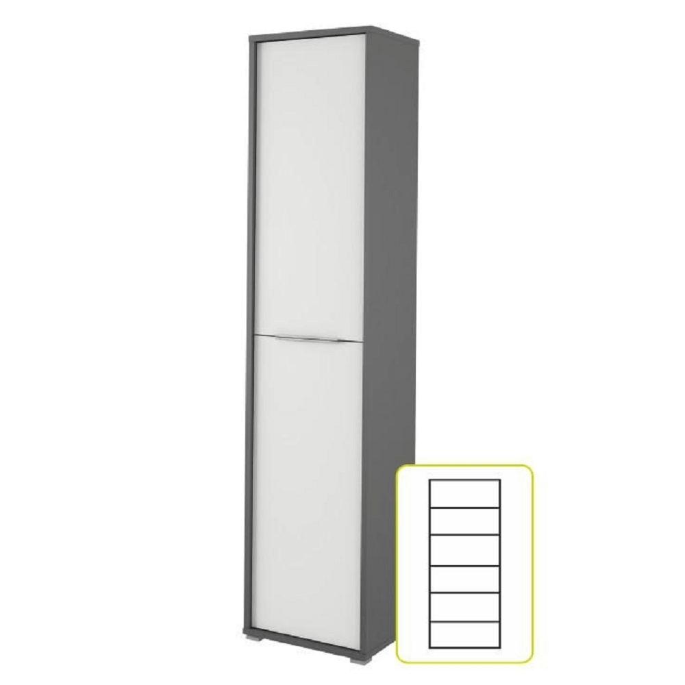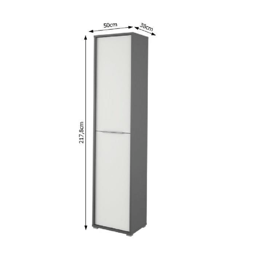 Dulap înalt cu poliţe RIOMA NEW TYP 06 Culoare: grafit/alb Material: DTD laminat Dimensiuni (LxGxÎ): 50x38x217,8 cm Grosimea materialului: 16/22 mm Se livrează demontat