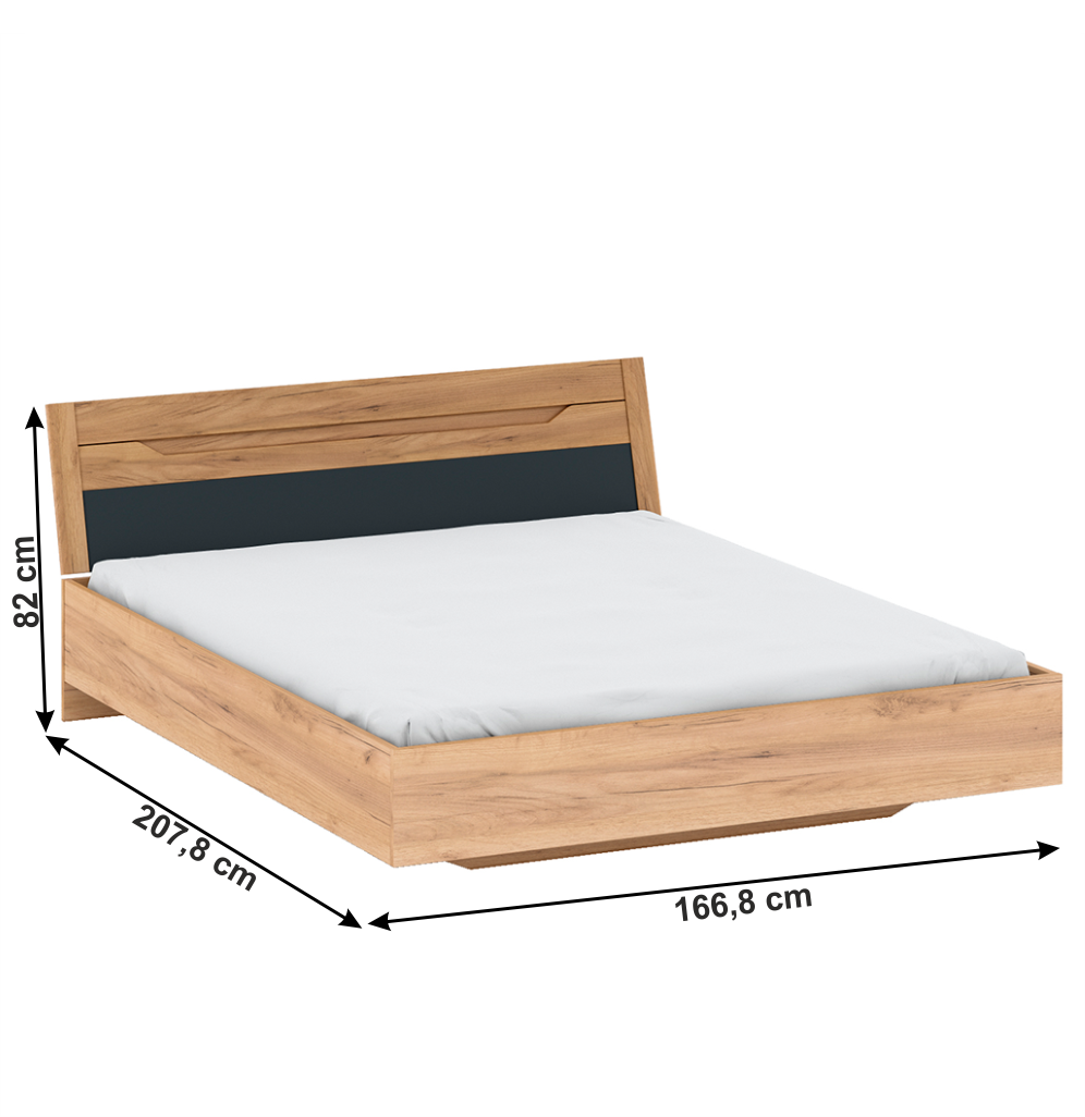 "Material: DTD laminat Culoare: stejar craft auriu/grafit gri Dimensiuni (LxlxÎ): 166,8x207,8x82 cm Spaţiu pentru dormit (LxL): 160x200 cm Grosimea materialului: 16 mm Furnizat fără saltea Furnizat fără grilaj Posibilitatea de a cumpăra o saltea şi un grilaj într-un cadru fix din oferta noastră Va recomandăm să achiziţionaţi o saltea cu înălţimea macar de 10 cm Furnizat nemontat"