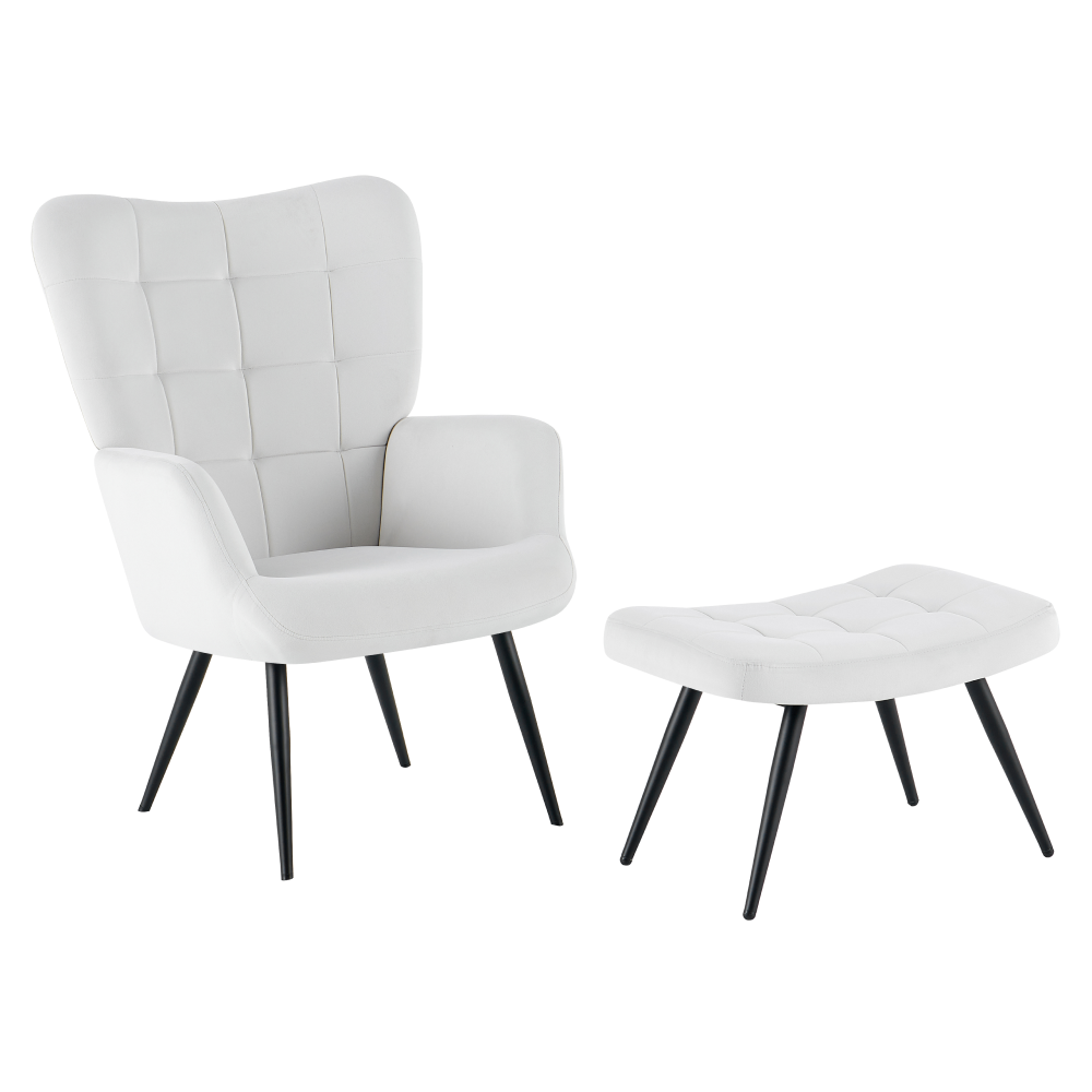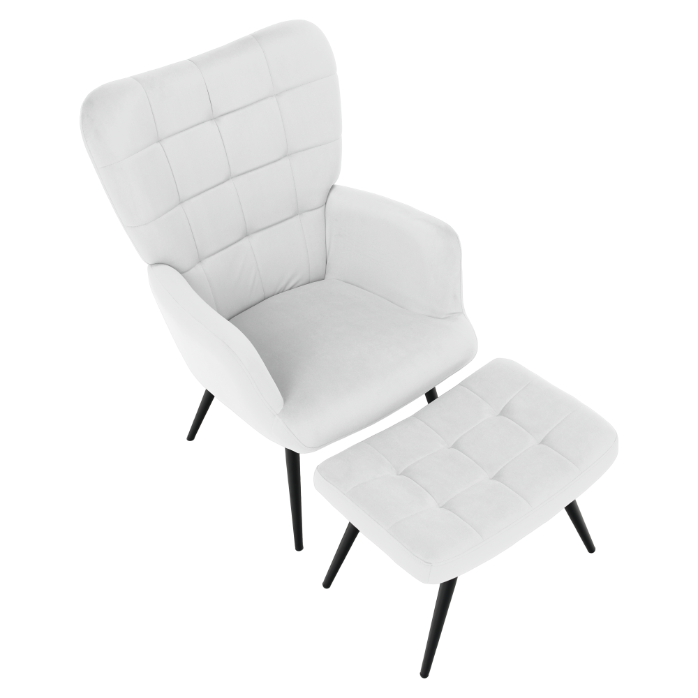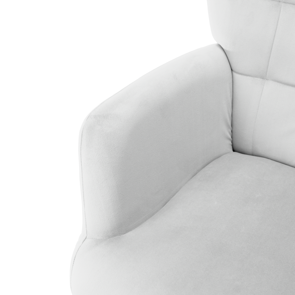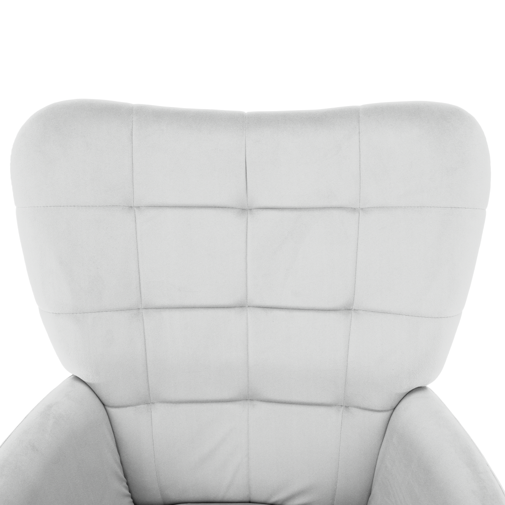 Material: ţesătură Velvet 46/ metal Rezistenţa ţesăturii la frecare conform testului Martindale: 95 000 de cicluri de frecare Culoare: gri deschis/negru Dimensiunile fotoliului (Lxlxh): 70x78x97 cm Înălţimea părţii de şezut: 46 cm Adâncimea părţii de şezut: 53 cm Dimensiunile bazei (Lxlxh): 56,5x40x39 cm Picioarele de la supportul de picioare sunt reglabile pe înălţime Portanţa fotoliului: 90 kg Portanţa suportului pentru picioare: 80 kg Livrat dezasamblat