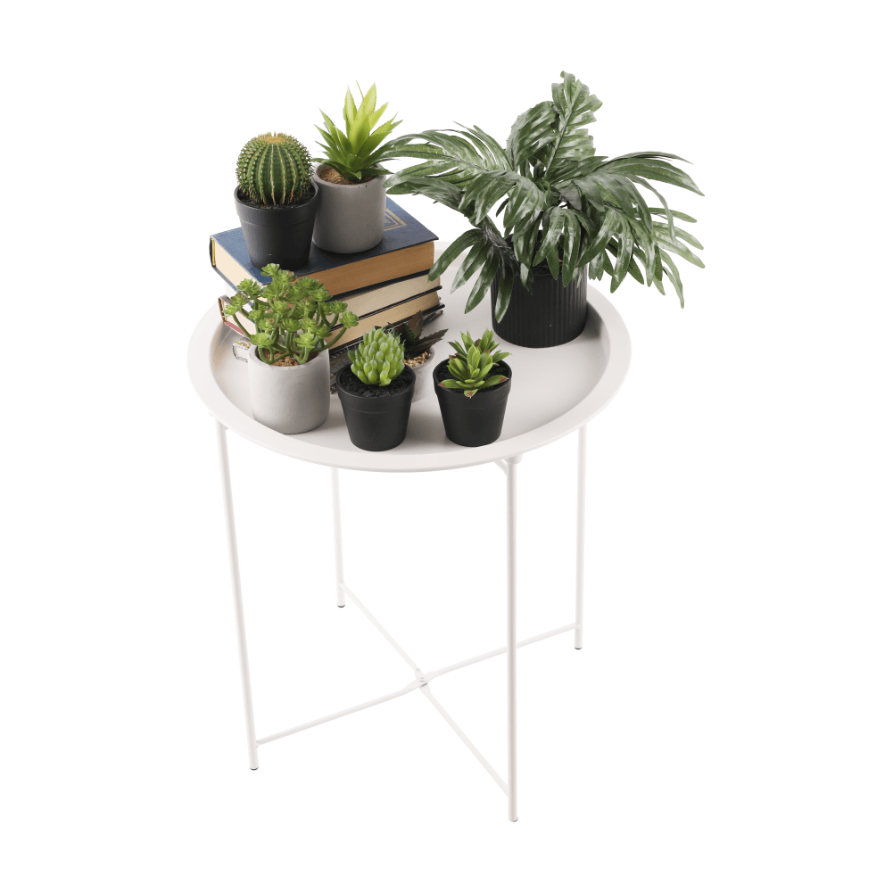 Material: metal Culoare: alb Dimensiuni (lxhxA): 47x50,2x47 cm Greutate susţinută: 8 kg Construcţie solidă Construcţie metalică Cu tavă detaşabilă Stil retro Livrat demontat