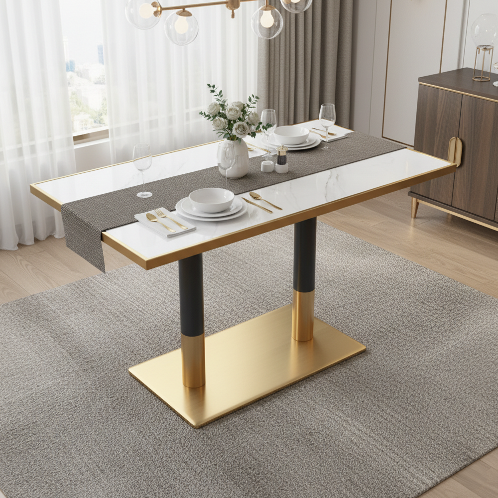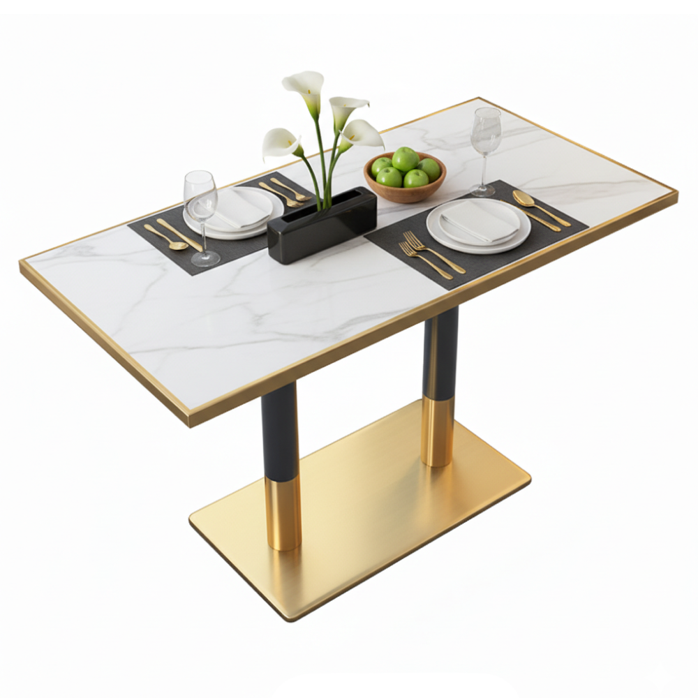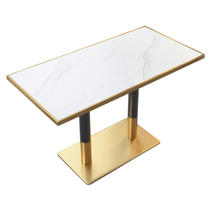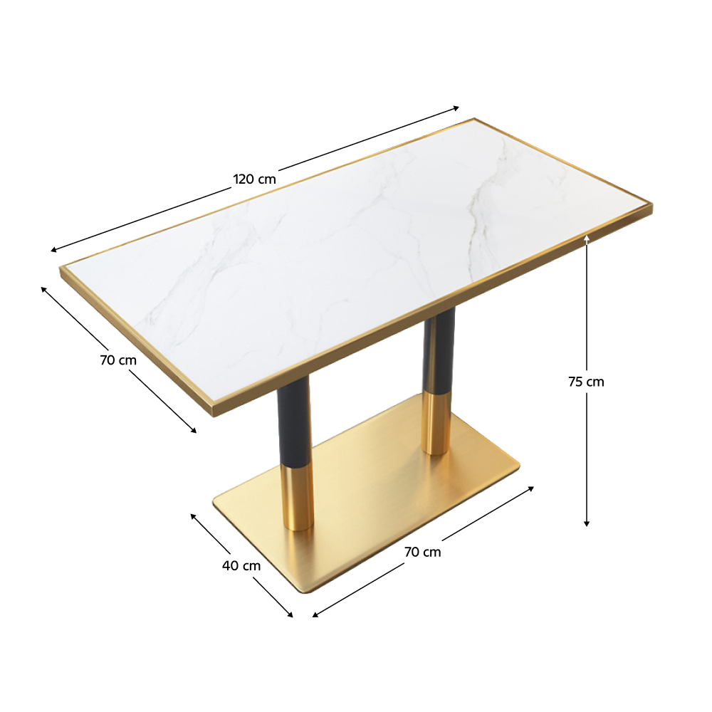 Bortis Impex Masă de sufragerie bistro, marmură albă/negru/aurie, 120x70 cm, DARIAN