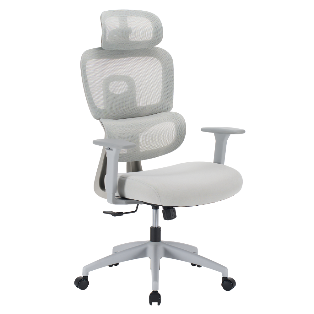 Material: plasă/ţesătură/plastic Rezistenţa plasei conform testului Martindale: 90 000 de cicluri de frecare Rezistenţa ţesăturii conform testului Martindale: 80 000 de cicluri de frecare Culoare: gri deschis/gri Dimensiuni (lxAxh): 70x68x116-121/126-131 cm Înălţimea părţii de şezut: 47-57 cm Adâncimea părţii de şezut: 54 cm Lăţime părţii de şezut: 52 cm Lăţime spătar: 53 cm Înălţime spătar: 61-66 cm Portanţă: 150 kg Scaun rotativ Funcţie de balansare Înălţime reglabilă a părţii de şezut Suport lombar dinamic Înălţime reglabilă a spătarului 3 poziţii de reglare a înălţimii spătarului Unghi reglabil al tetierei Cotiere reglabile pe înălţime şezut confortabil şi moale Roţi universale Roţile sunt potrivite atât pentru podele moi, cât şi dure Practic Caracteristici ergonomice Livrat dezasamblat