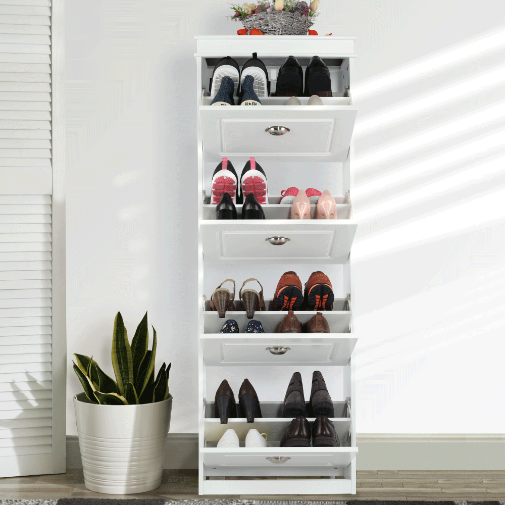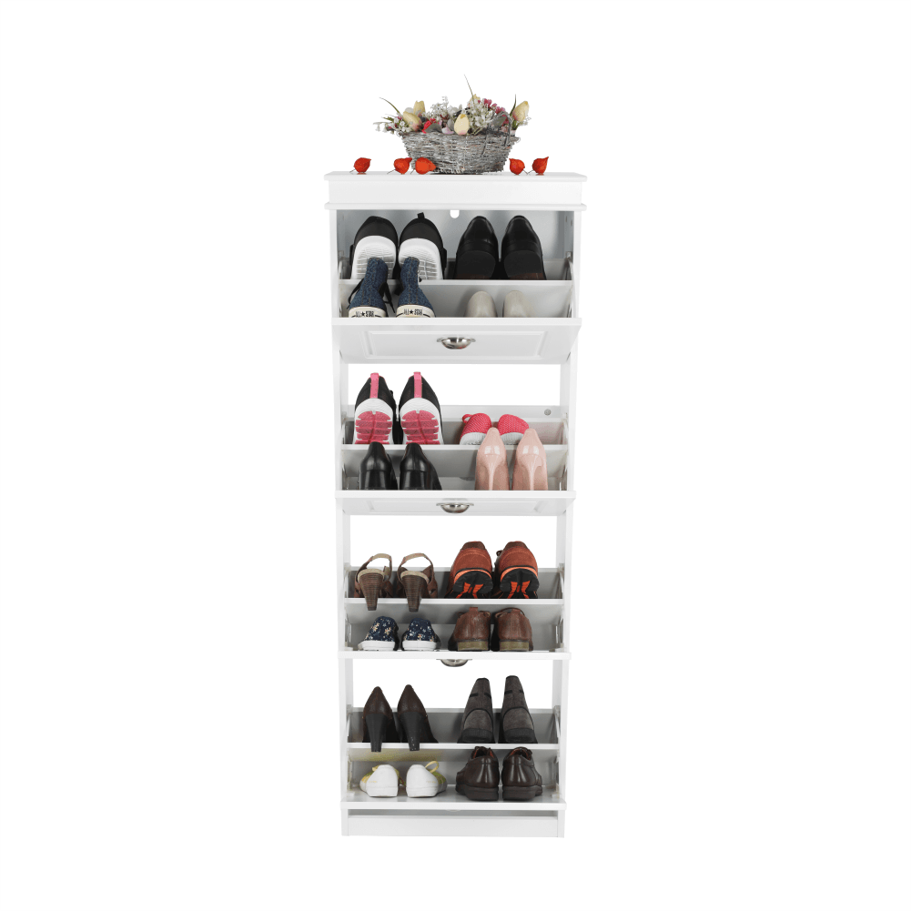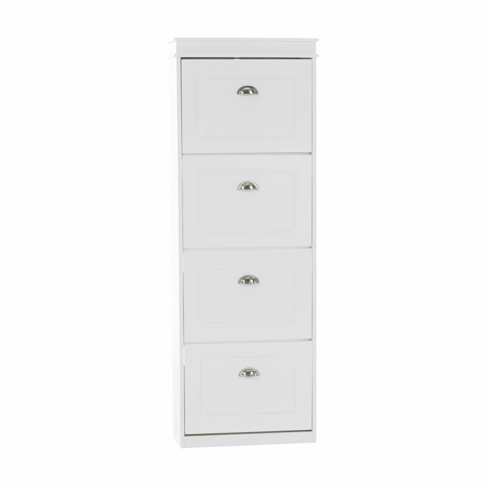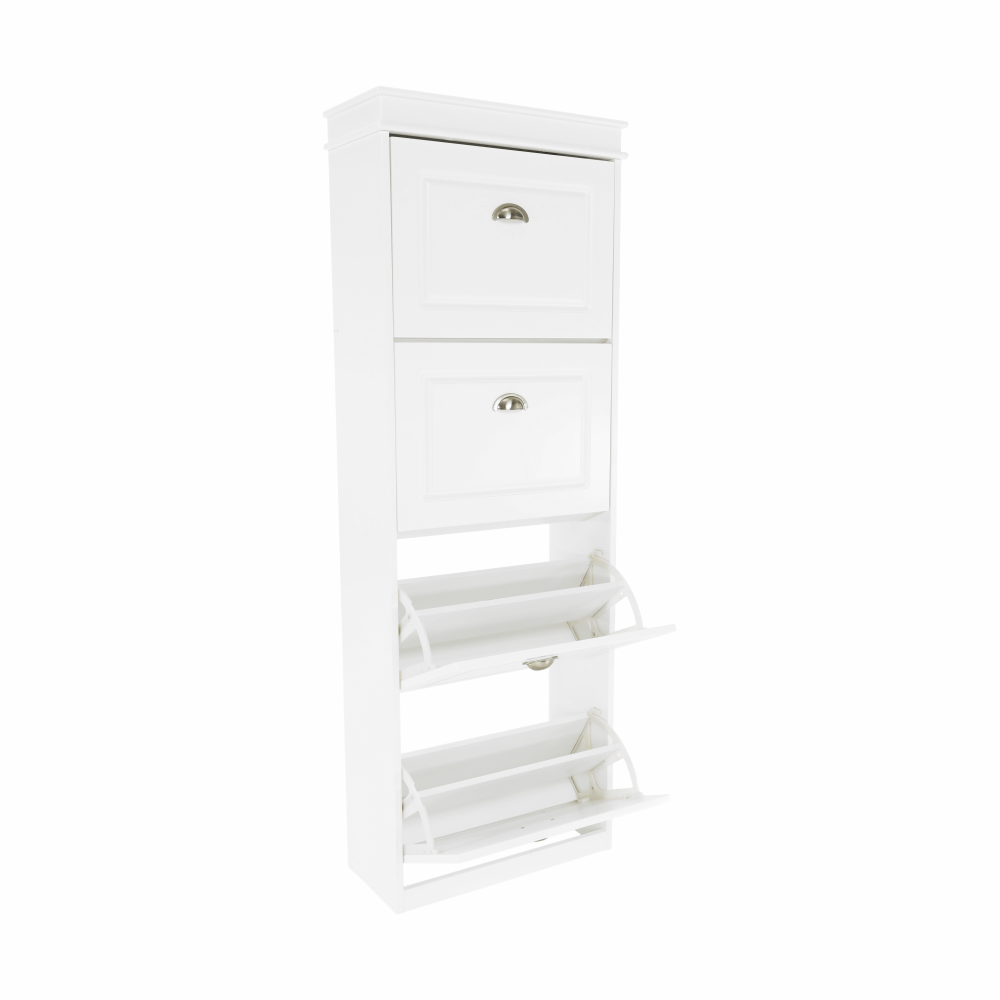 Pantofar SEBER TYP 3, Culoare: alb Material: MDF/PAL Dimensiuni (lxhxA): 53,5x152x24 cm 4 compartimente Rafturi înclinate Livrat nemontat.