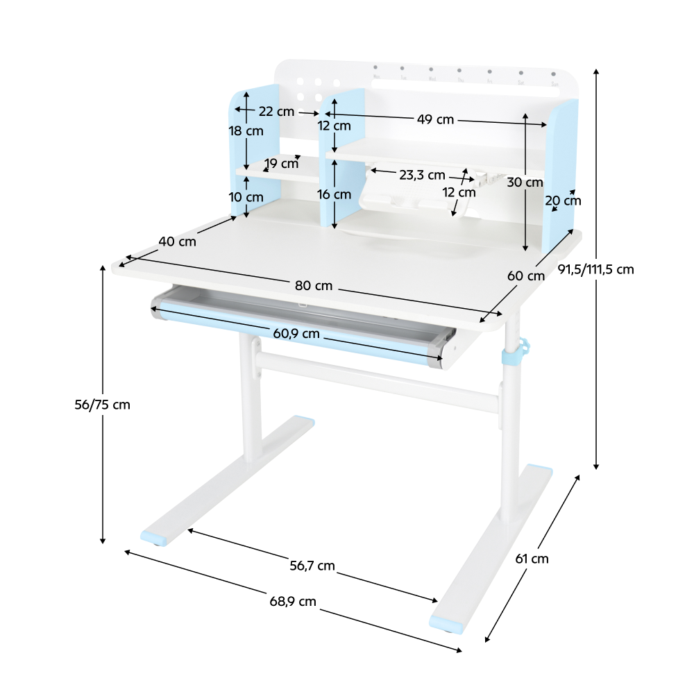 Bortis Impex Birou crescător, albastru/alb, ADAN