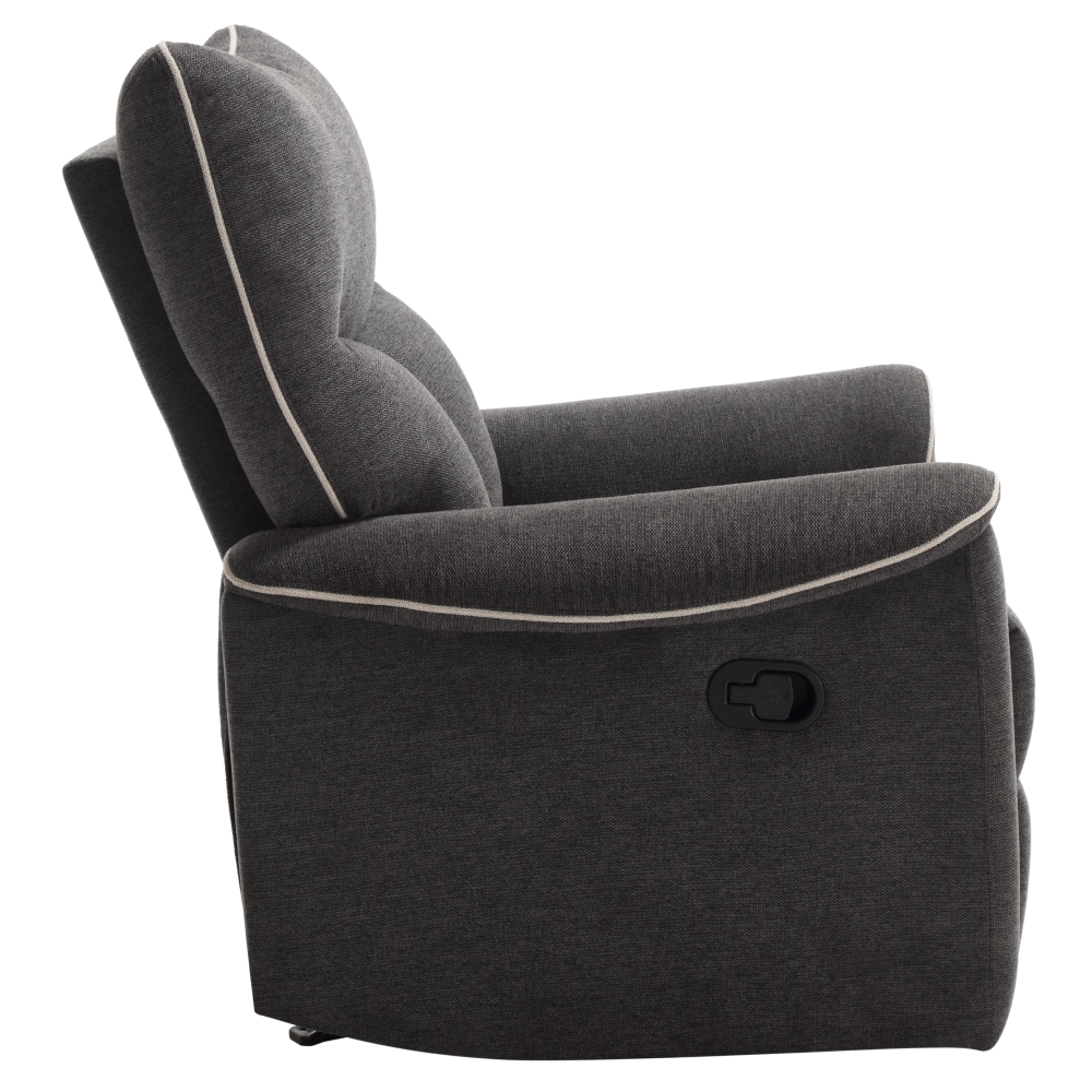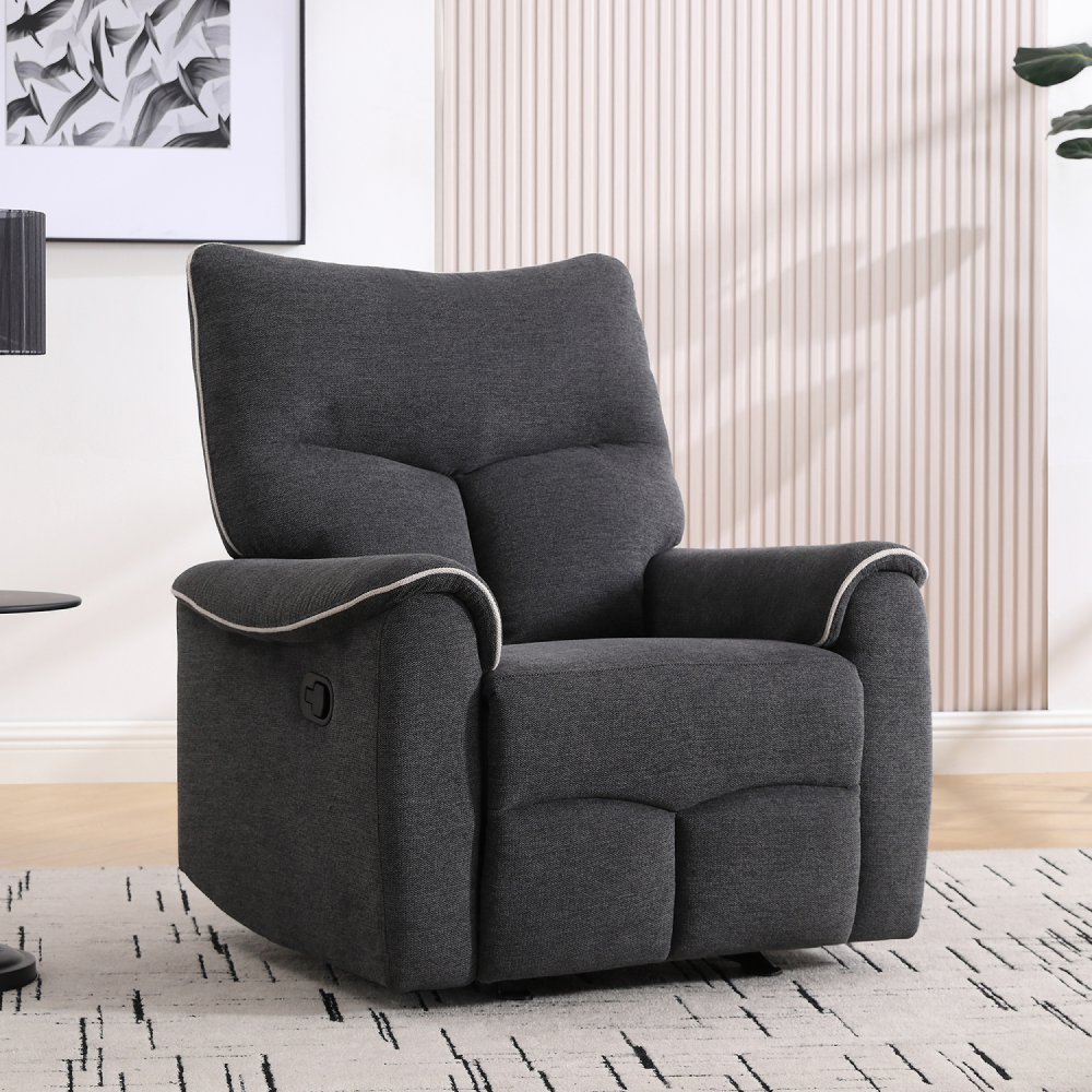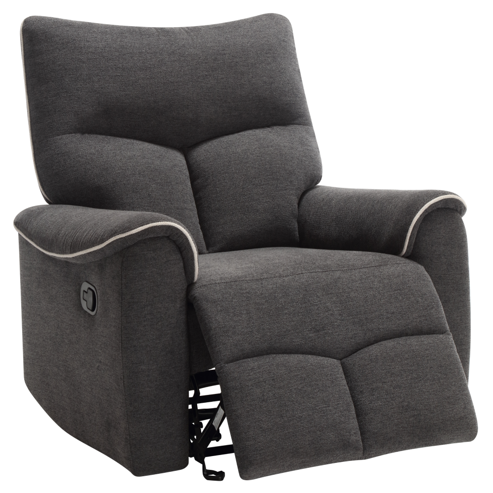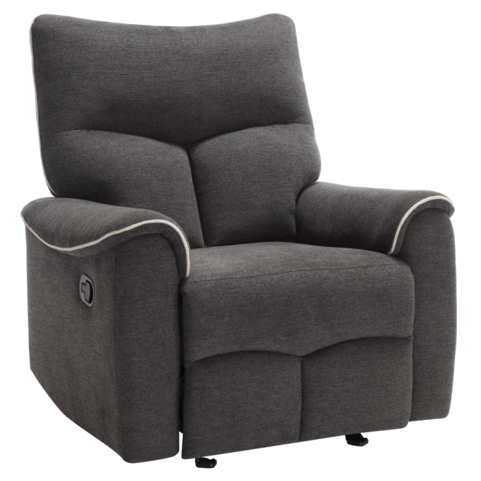 Material: ţesătură/oţel Culoare: gri închis/gri deschis Dimensiuni (lxAxh): 95x95-163x81-81 cm Înălţimea părţii de şezut: 49 cm Adâncimea părţii de şezut: 55 cm Lăţimea părţii de şezut: 52 cm, Lăţimea spatelui: 70 cm Înălţime spate: 63 cm Dimensiuni cotieră (lxAxh): 18x75x45 cm Portanţă: 110 kg Umplutură: spumă Poziţionabil Poziţionabil mecanic De relaxare Cusut decorativ Margini decorative Livrat dezasamblat