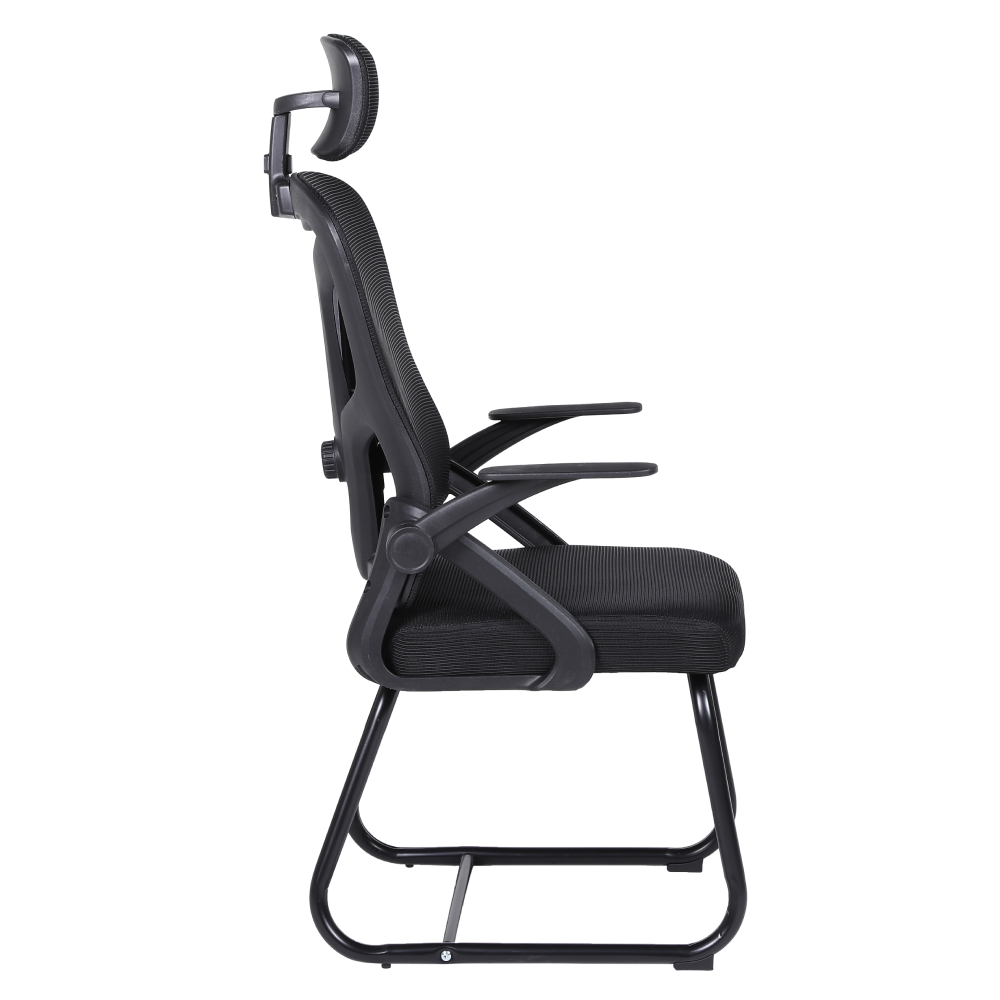 Material: plasă/plastic/fier Rezistenţa ţesăturii la frecare conform testului Martindale: 15 000 de cicluri de frecare Culoare: neagră Dimensiuni (lxAxh): 61x54x113 cm Înălţimea părţii de şezut: 45 cm Adâncimea părţii de şezut: 44 cm Lăţimea părţii de şezut: 47 cm Lăţime spătar: 47 cm Înălţime spătar: 70 cm Înălţime de la sol la cotieră: 63 cm Portanţa: 130 kg Cu ??cotiere Cotiere rabatabile Tetieră reglabilă Livrat dezasamblat