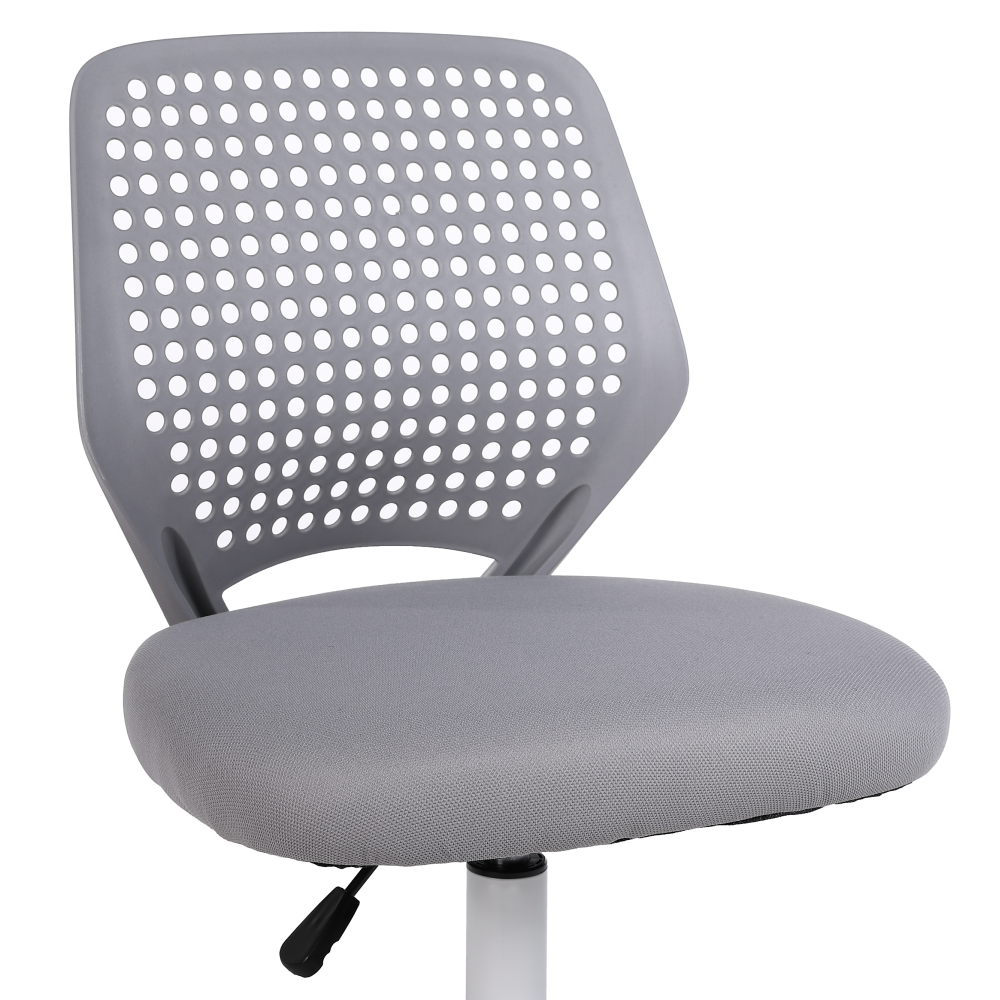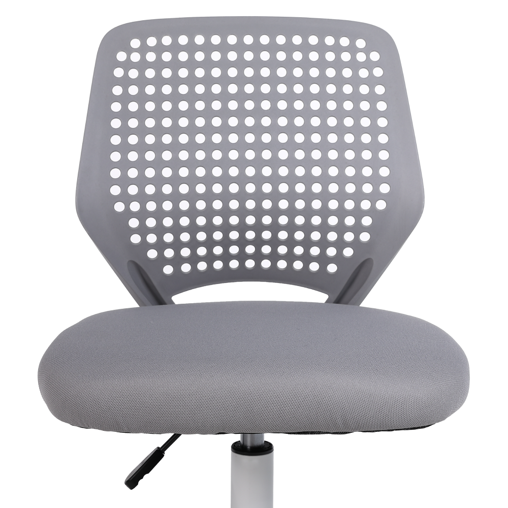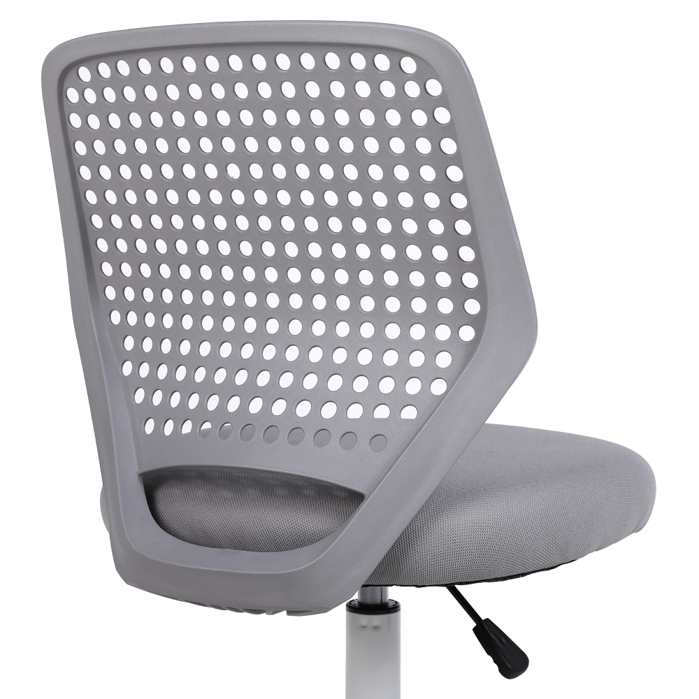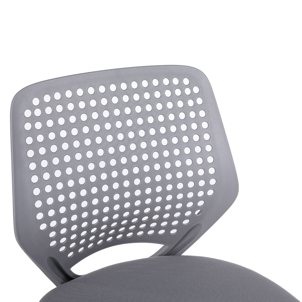Material: plasă /plastic Rezistenţa ţesăturii la frecare conform testului Martindale: 15 000 de cicluri de frecare Culoare: gri/albă Dimensiuni (lxAxh): Înălţimea părţii de şezut: 46x50x79/89 cm 41-51 cm Lăţimea părţii de şezut: 46 cm Adâncimea părţii de şezut: 43 cm Înălţime spătar: 43 cm Lăţime spătar: 35 cm Portanţă: 100 cm Pivotant Roţi universale pivotante Potrivite pentru pardoseli dure şi moi Bază cu cinci braţe Livrat dezasamblat