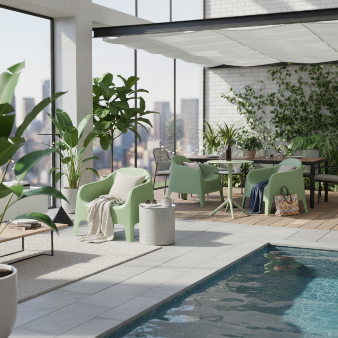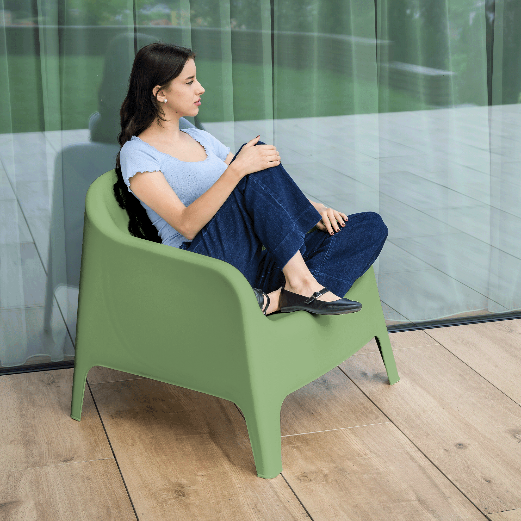 Material: plastic Culoare: verde Dimensiuni (lxAxh): 70x73x70 cm Înălţimea părţii de şezut: 37 cm Adâncimea părţii de şezut: 48 cm Lăţimea părţii de şezut: 52 cm Înălţime spate: 50 cm Stivuibile Cu filtru UV Potrivit pentru interior şi exterior Orificiu de scurgere în partea de şezut Portanţă: 100 kg Livrat asamblat