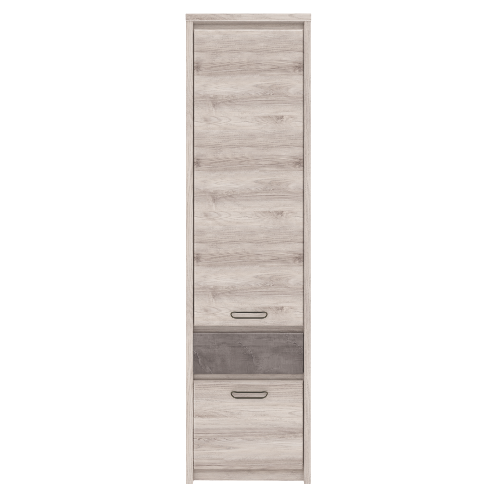 Material: PAL melaminat Culoare: castan Nairobi / onix Dimensiuni (LxAxÎ): 56x40x210 cm Grosime material: 1,6-3,2 cm Mânere metalice Culoarea mânerelor: neagră Dulap mixt Două uşi Un sertar Capacitate sertar: 3 kg Capacitatea de încărcare a raftului: 5 kg Picioare din plastic Vă recomandăm să ataşaţi mobilierul de perete Design modern Livrată dezasamblată