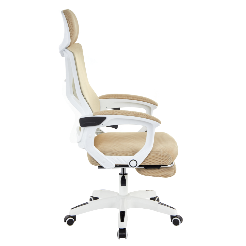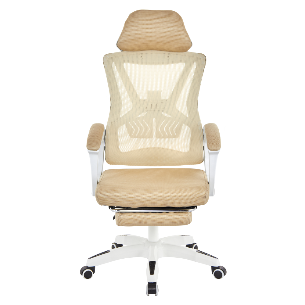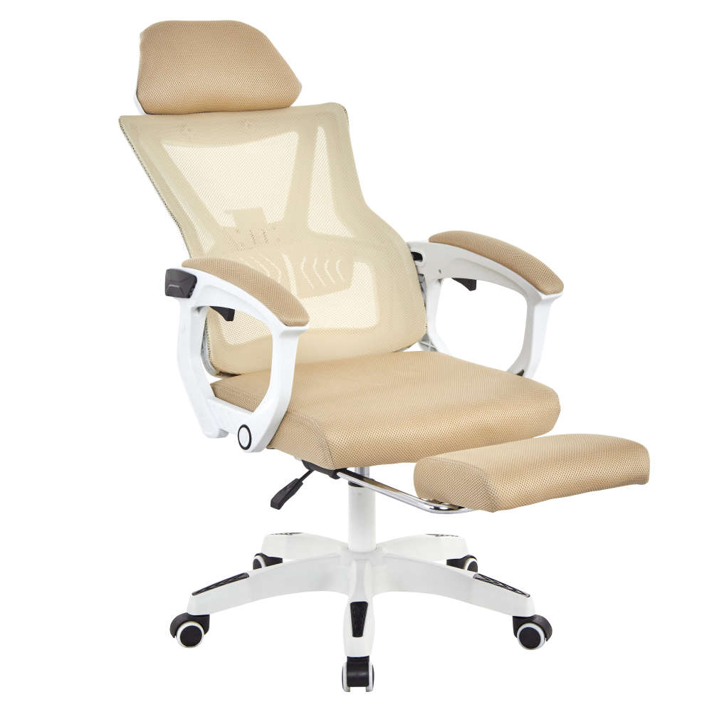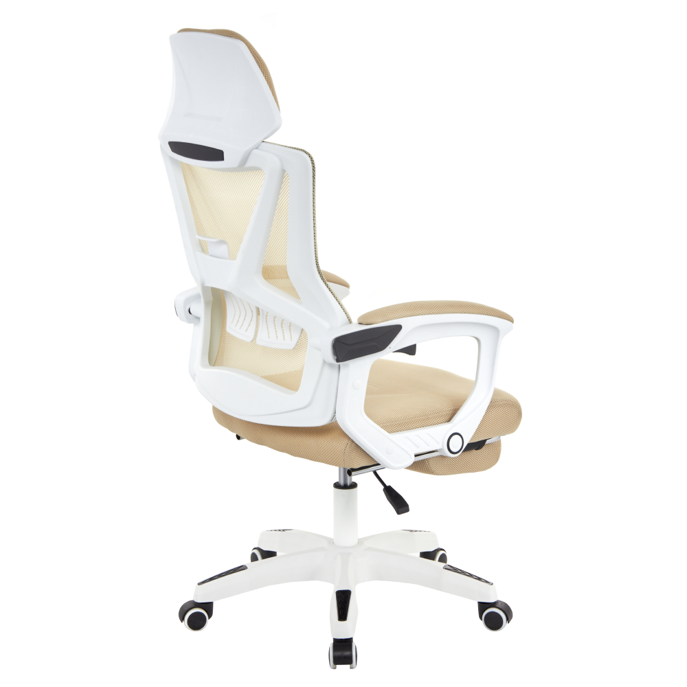 Material: plasă/plastic Rezistenţa ţesăturii la frecare conform testului Martindale: 90 000 de cicluri de frecare Culoare: bej/albă Dimensiuni (lxAxh): 59x63x112-122 cm Înălţimea părţii de şezu: 41-51 cm Lăţime scaun: 49 cm Adâncimea părţii de şezut: 48 cm Înălţime spătar: 73 cm Lăţime spătar: 48 cm Înălţime reglabilă a părţii de şezu Cotiere tapiţate Suport pentru picioare extensibil Spătar reglabil Reglare rigiditate lombară Mecanism de balansare Roţi universale Potrivite pentru podele dure şi moi Bază cu cinci braţe Portanţă: 150 kg Livrat dezasamblat