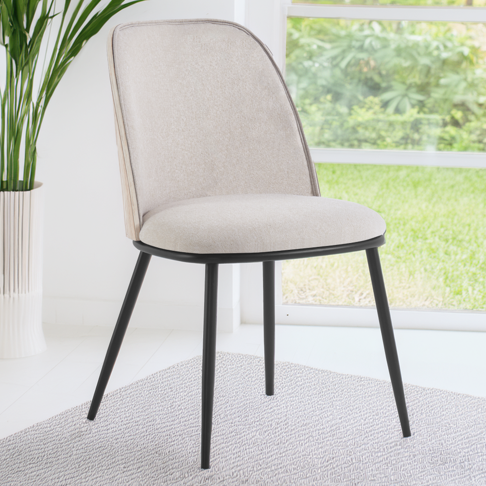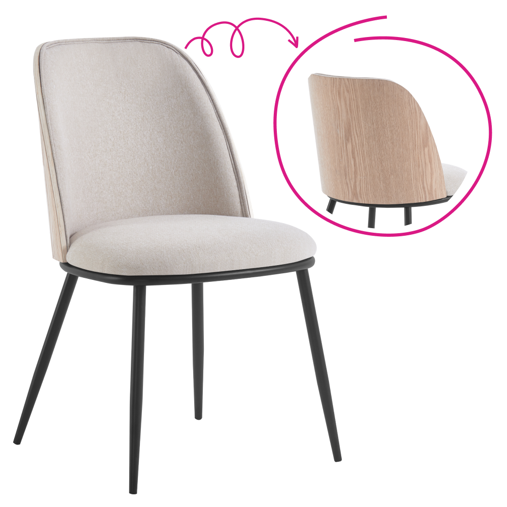 Material: ţesătură/lemn de cauciuc/metal Rezistenţa ţesăturii la frecare conform testului Martindale: 85 000 cicluri de frecare Culoare: bej-maroniu/natural/negru Dimensiuni (lxAxh): 47x55x80 cm Înălţime părţii de şezut: 48 cm Adâncimea părţii de şezut: 42 cm Înălţime spătar: 46 cm Lăţime spătar: 48 cm Lemn îndoit De sufragerie De design Portanţă: 90 kg Livrat dezasamblat