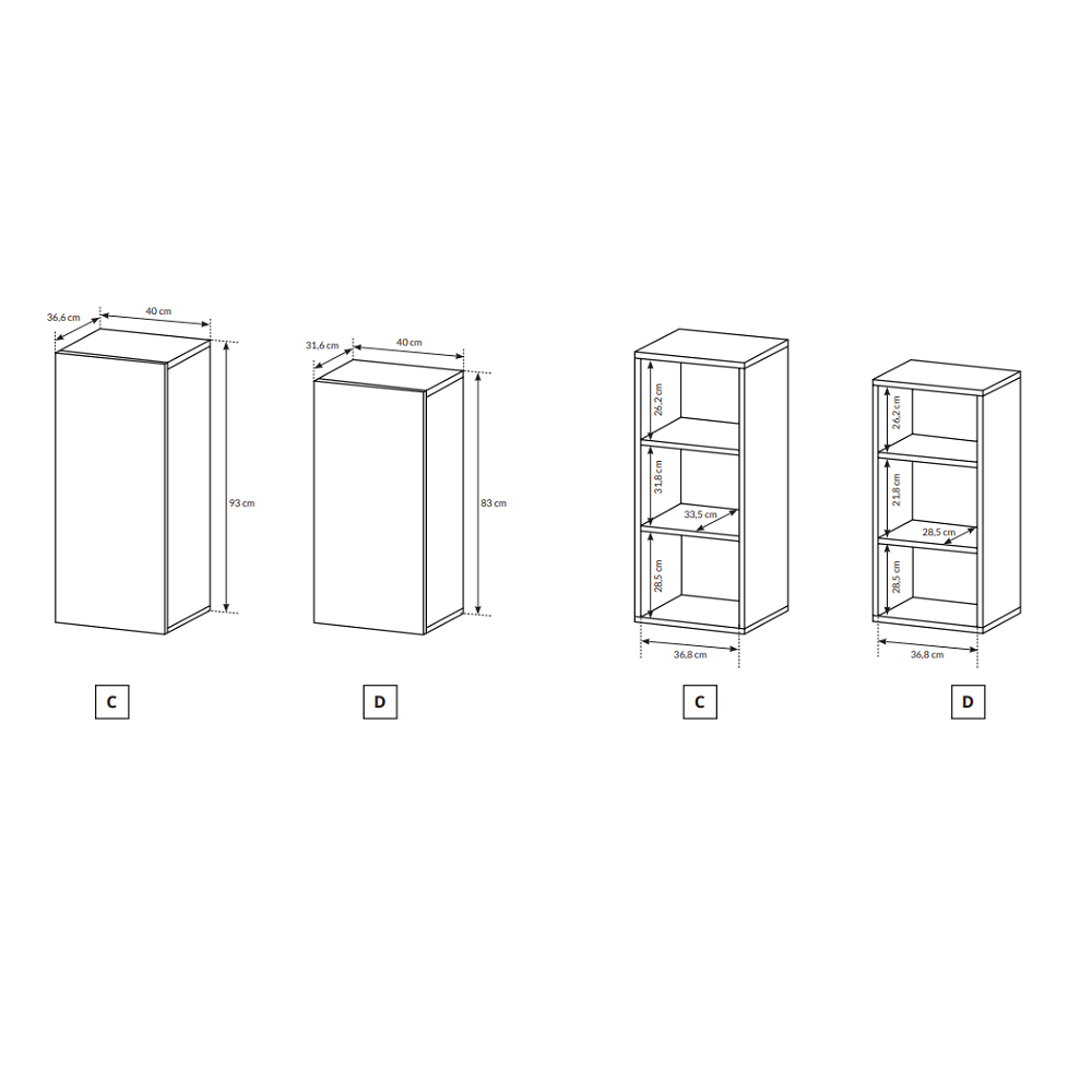 Material: DTD laminat / canturi ABS Culoare: alb / stejar auriu Dimensiuni (LxlxH): 220-270x45x180 cm Masă RTV Trei dulapuri, un sertar, spaţiu deschis Adâncimea dulapului mai îngust şi a dulapului cu partea deschisă: 40,4 cm Adâncimea dulapului din mijloc: 45 4 cm Lăţimea dulapului din stânga şi mijloc: 40 cm Lăţimea dulapului cu partea deschisă: 140 cm Dimensiunile sertarului (LxlxH): 79,6x33,4x19,6 cm Dulap suspendat cu două uşi Dulap suspendat cu spaţiu deschis Cu sistem tactil PUSH UP Furnizat nemontat