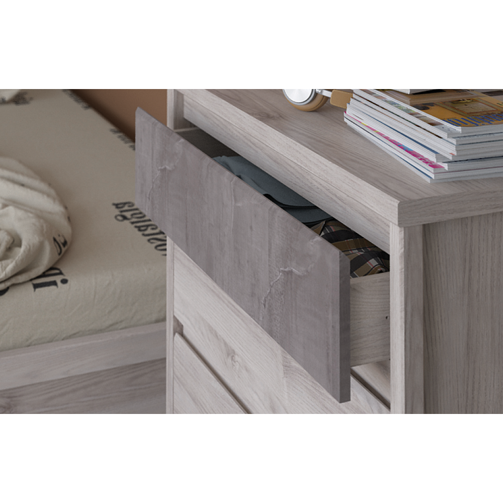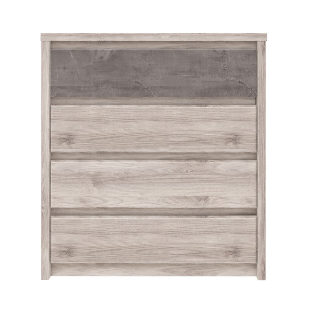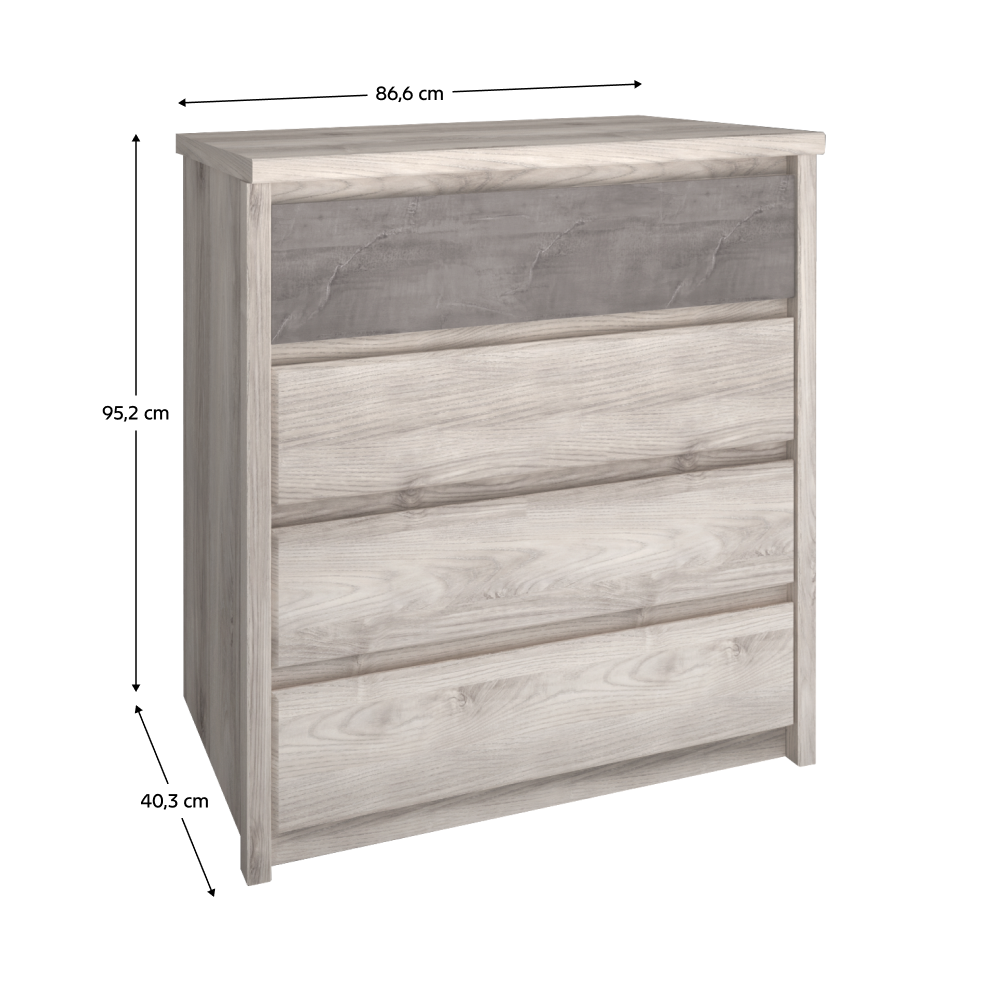 Material: PAL melaminat Culoare: castan Nairobi / onix Dimensiuni (LxAxÎ): 86,6x95,2x40,3 cm Grosimea materialului: 1,6-3,2 kg Patru sertare Capacitate sertare: 5 kg Picioare de plastic Design modern Livrată dezasamblată