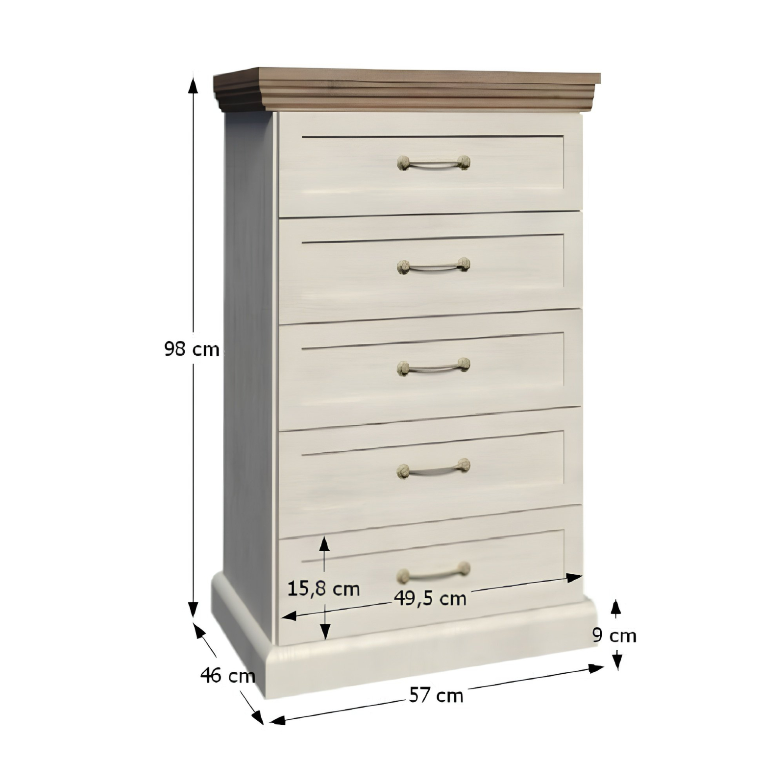 Comodă KS5 cu cinci sertare din ansamblul modular elegant Royal în stilul provensal.