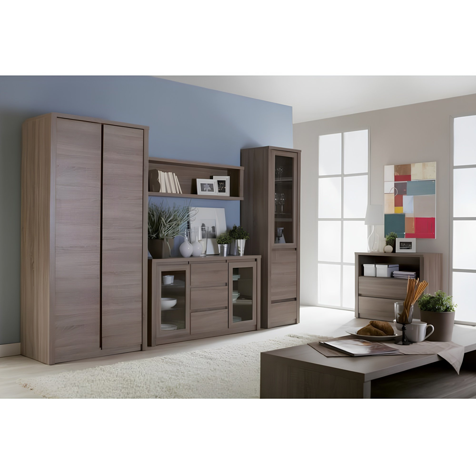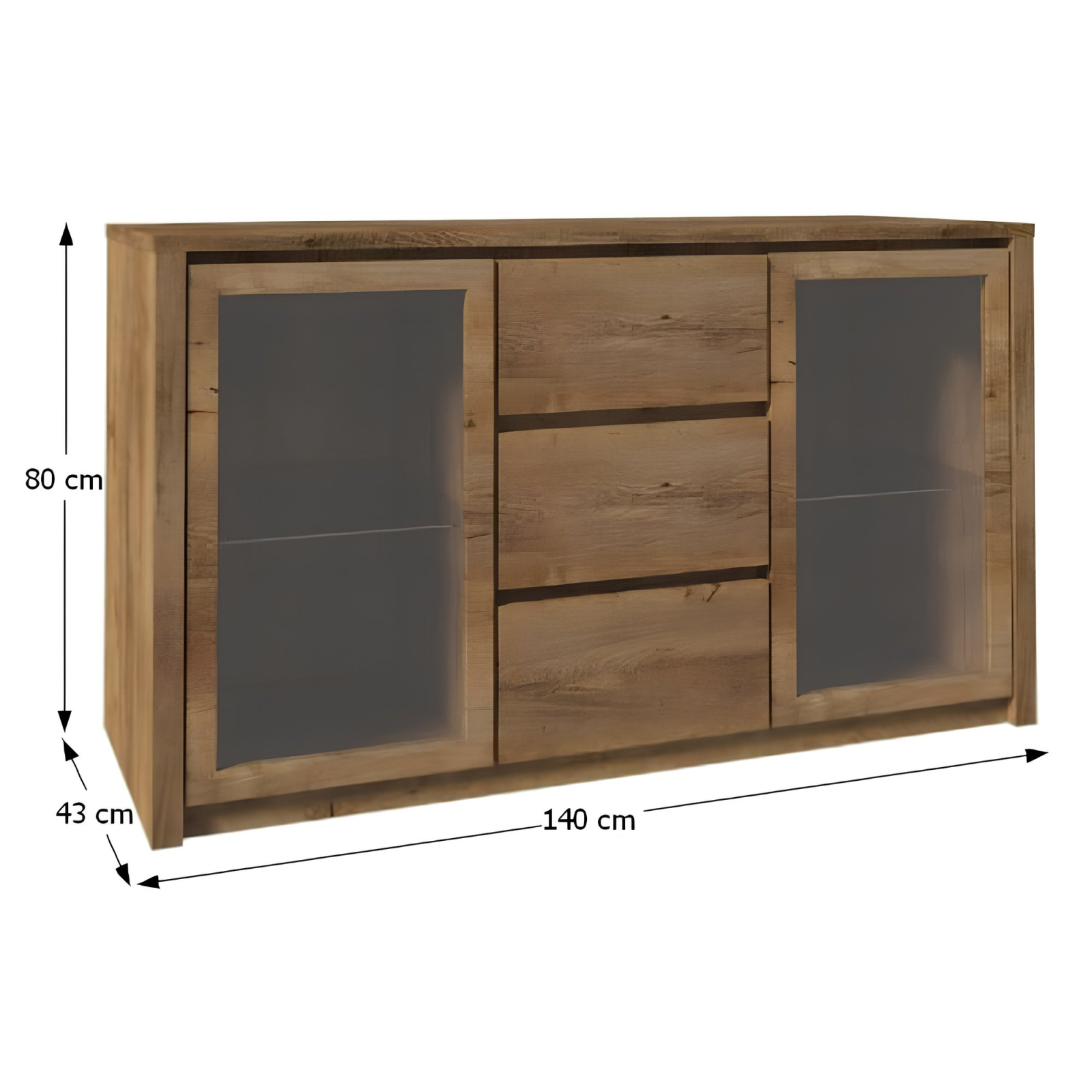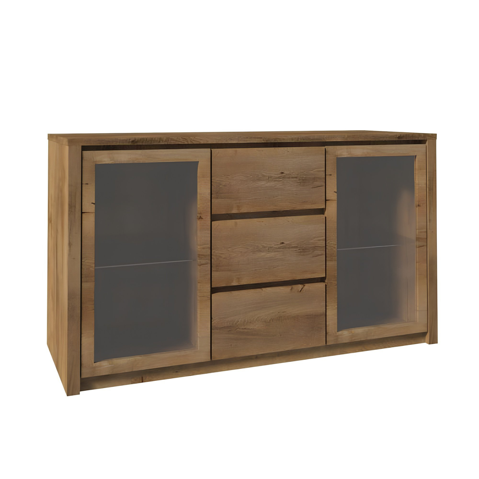 Bortis Impex Comodă cu două uşi din sticlă şi trei sertare, stejar lefkas închis, MONTANA K2D