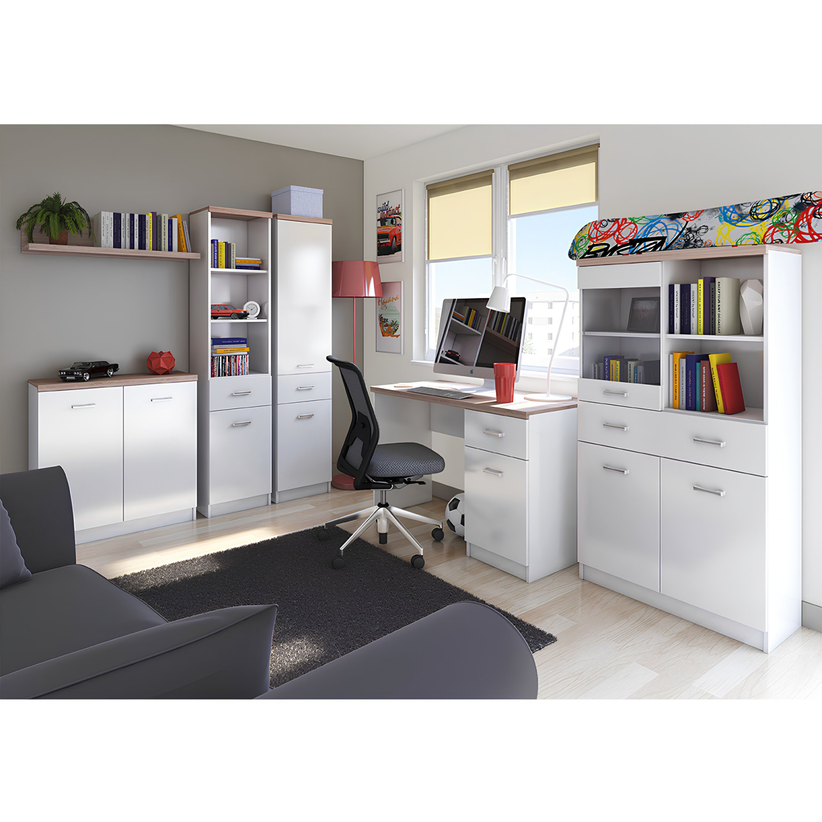 Mobilier modular modern potrivit pentru amenajarea biroului, sălii de lucru, livingului sau holului.