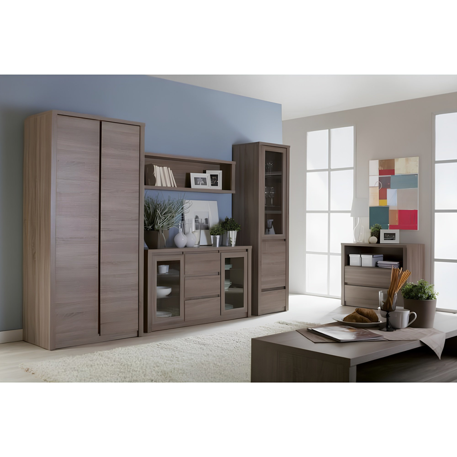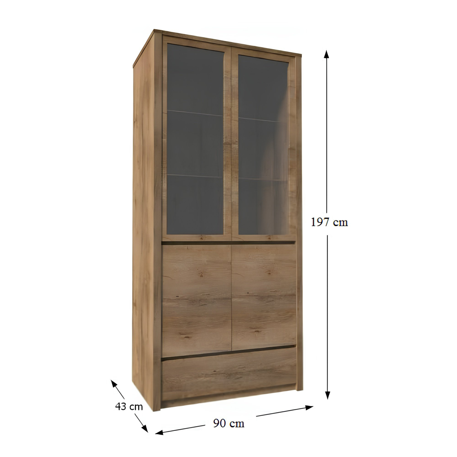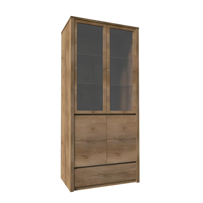 Bortis Impex Vitrină cu un sertar şi uşi împărţite pline şi cu sticlă, stejar lefkas închis, MONTANA W2D