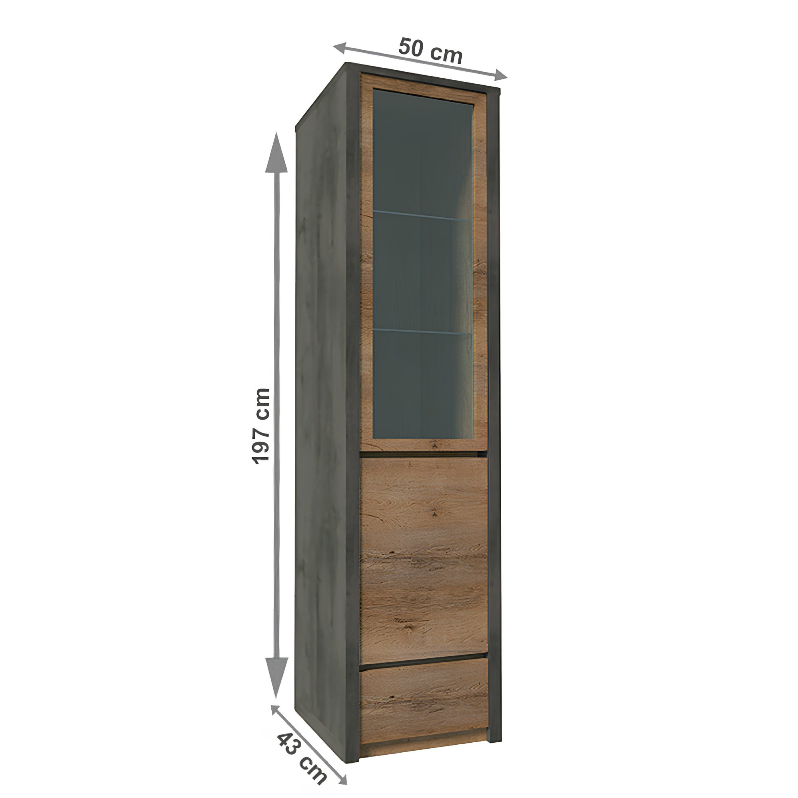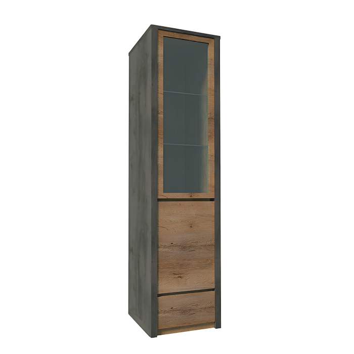 Bortis Impex Vitrină, stejar lefkas închis/gri, MONTANA W1D